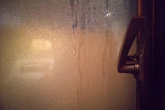 暖かく湿った空気が、窓などに触れると温度が下がります。
