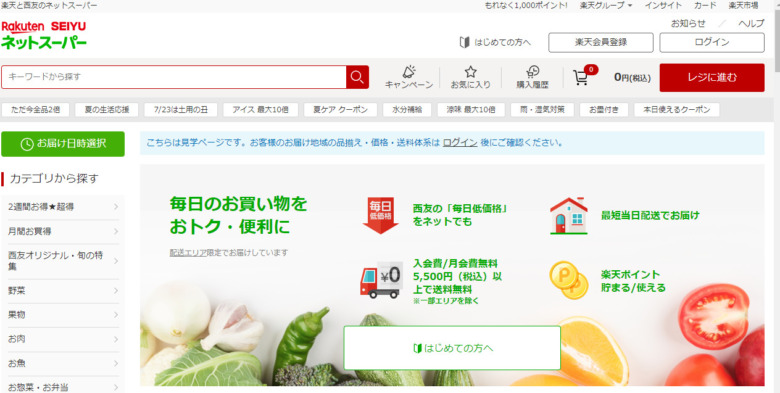 Rakuten SEIYUネットスーパー約20,000点10時〜22時330円