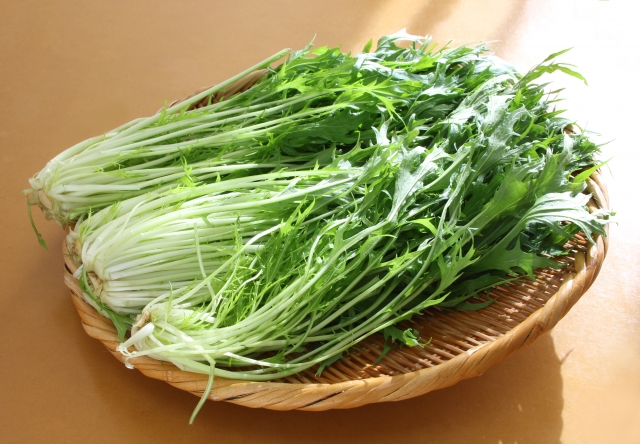 水菜は、根の部分から3cm位上のところでカットします。根っこが浸る程度の水を張って栽培しましょう。