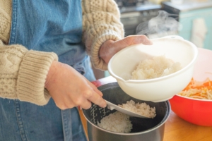 炊飯器で調理をすれば、火が通ってからも焦げません。